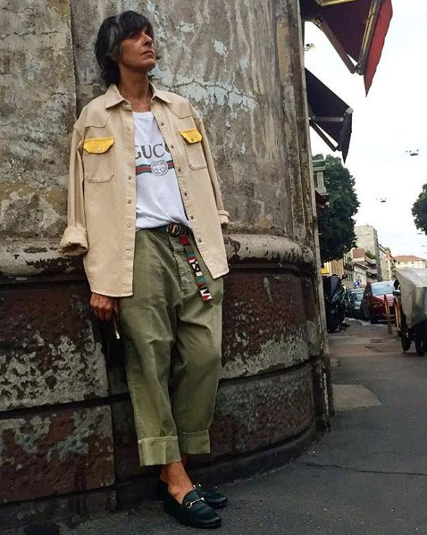 В то же время, Анна Делло Руссо, стилист, фэшн-консультант и главный редактор Vogue Japan, в свои 56 лет смело носит мини-юбки просто потому, что ей так нравится. Похоже, ей совсем нет дела до того, что подумают и скажут о ней другие — что бы они ни сказали, это будут их домыслы и их проекции, и никак не ее.