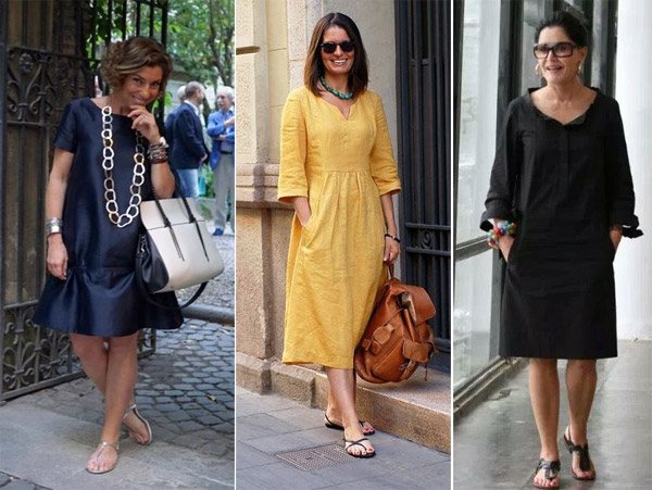К однотонному платью я рекомендую обязательно надевать украшение на шею или браслет. Полуприлегающий или расклешенный силуэт подойдет практически всем женщинам после 50-60 и старше