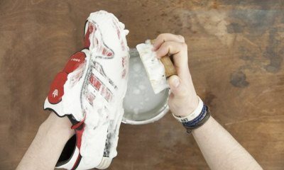 Подготовительный этап не отличается от стирки обуви в машинке. Пару расшнуровывают, извлекают стельки, промывают подошву. - Отдельно готовят концентрированный мыльный раствор.