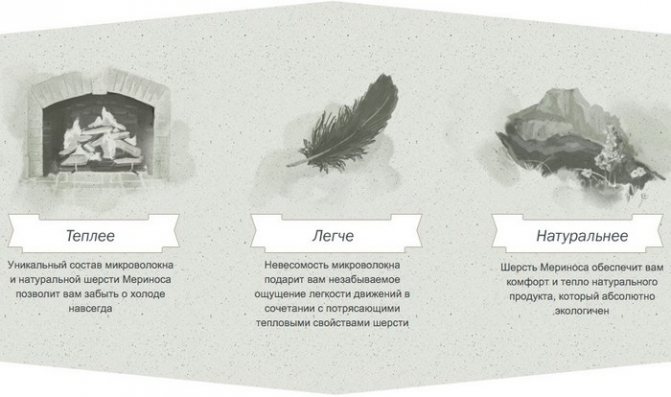 Наполнитель является разновидностью синтетического пуха и по свойствам сопоставим с тинсулейтом и изософтом. Разница лишь в том, что в составе присутствует натуральная овечья шерсть в количестве 2% – 10%, а посторонние включения (низкокачественное сырье и отходы химического производства) отсутствуют.