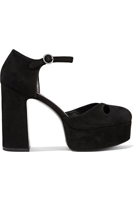 Модель из металлизированной кожи или замши с напылением на скрытой платформе, совмещенной со шпилькой, можно надеть практически к любому вечернему платью.
