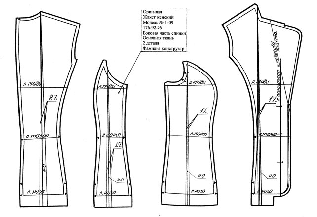 Рисунок 12.1 – Чертежи лекал основных деталей женского жакета