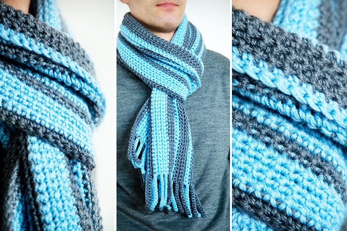 При такой форме вязки шарфа в каждом лицевом ряду добавляется по 1 петле в начале ряда и по 1 уменьшают в конце ряда. Этот принцип повторяется до тех пор, пока шарфом не будет достигнута необходимая длина. Какой ширины должен быть мужской шарф, определяется в самом начале работы, когда набирается определенное количество петель для последующей вязки. Когда шарф связан таким способом, то узоры на нем будут располагаться по диагонали.