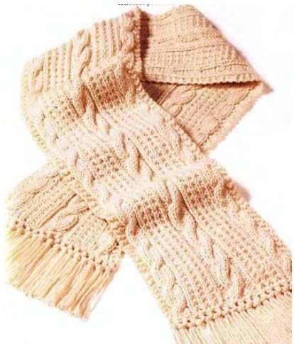 Например, следующая схема подойдет начинающим мастерицам. Вязание осуществляется поочередным выполнением изн. и лиц. петлиц. Шарф вяжут по прямой без прибавок и убавок.