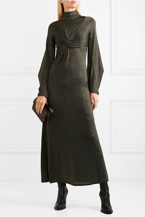 Приталенный силуэт и длина макси выручат обладательниц стандартной фигуры.