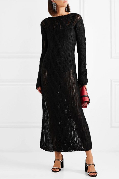 Утепленная модель крупной вязки и длиной в пол – явление не редкое, но все-таки неожиданное. Облачиться в полностью вязаное платье макси решится только аккуратная девушка, не привыкшая к общественному транспорту и местам большого скопления людей.