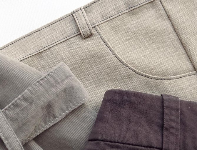 Если вы уже изготовили брюки или купили новые без фиксаторов для пояса и хотите дополнить их шлевками, то не рекомендуется сразу же выполнять их из основной ткани. Поищите контрастные кусочки для наработки навыка – возможно, с их помощью вам удастся и разнообразить фасон, подчеркнув свой стиль.