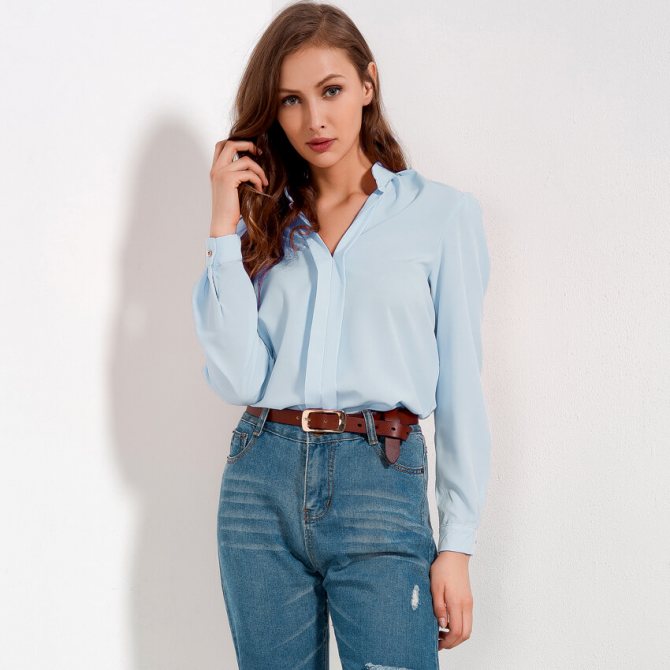 - Рубашки. Схожи с классическими блузками, однако зачастую имеют пуговицы или другие застежки. Хорошо сочетаются со строгими брюками или джинсами. Также уместны в деловом стиле.
