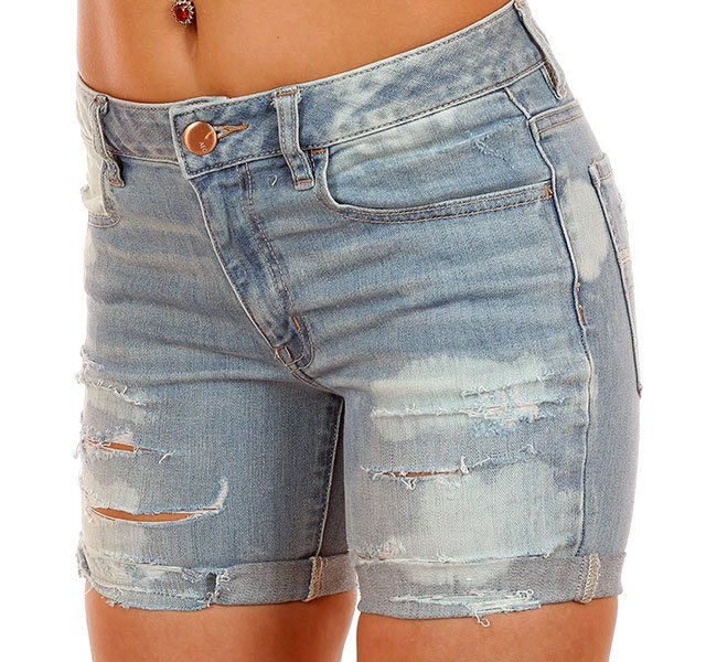 Мода приветствует короткие шорты с необработанными краями и выглядывающими снизу белыми карманами. Лучше всего подойдет светлый деним, не слишком плотно прилегающий к телу.