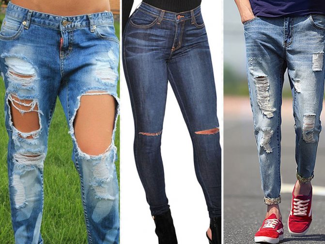 Чтобы не выглядеть нелепо, не стоит делать прорехи в области ягодиц. Торчащее из дыры нижнее белье вызовет лишь насмешку. Наиболее популярны джинсы, рваные на коленях или бедрах.