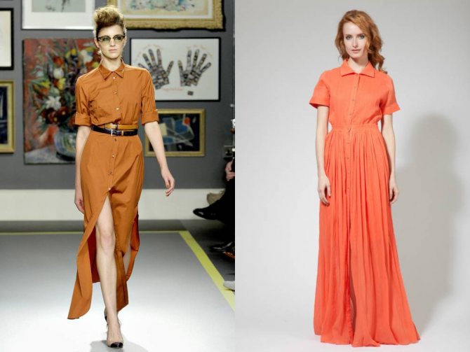 Немало брендов предлагают такой стиль. Платья-рубашки розового, голубого и нежно-кораллового цвета наиболее популярны. Для лета модельеры советуют подобрать белоснежные модели, выделяющие красоту ног и загар. Почти все модельеры предлагают классические формы рубашек, но оригинальный стиль также популярен. Если вы хотите эпатировать, покупайте модель от бренда Balenciaga с тонкими вставками. Подол платья выделен модельерами Ports 1961. Стильные фасоны от Tommy Hilfiger отличаются обрезным рукавом и яркими вставками. Также торговая марка порадовала не только традиционными натуральными материалами вроде шифона и хлопка, но и кожаными платьями горчичного цвета. Бренд Tods тоже выпустил одежду из тонкой кожи.