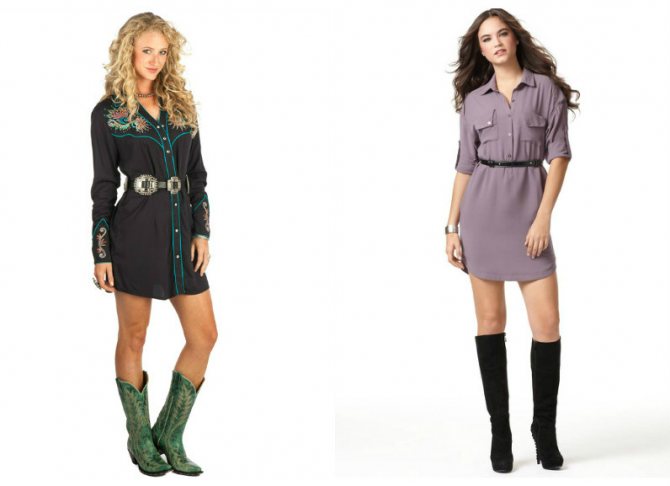 Рубашка длиной немного выше колен актуальна в летнее время. Исходя из материала и фасона, с такой одеждой можно умело совмещать как обувь на платформе, так и модели на высоком каблуке. Длинное котоновое или джинсовое платье-рубашка не нуждается в особых аксессуарах. Достаточно будет сумочки и обуви, колец и браслета, и вы будете выглядеть настоящей королевой!