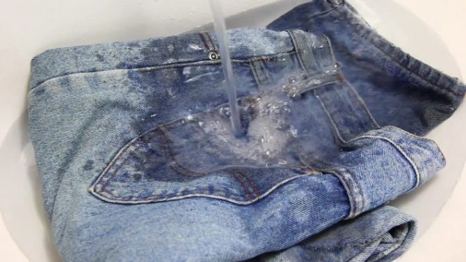 - Хорошенько прополощите джинсы, замочите на несколько минут в холодной воде.