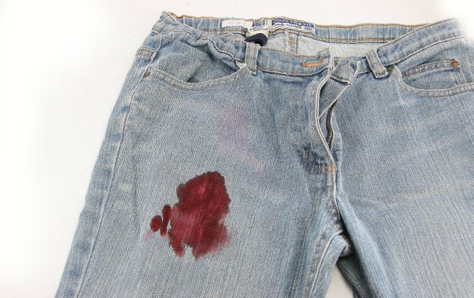 Перед использованием любых методов выведения кровяных пятен с джинсов следует запомнить: