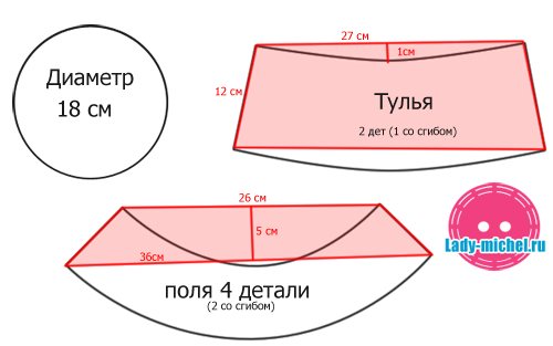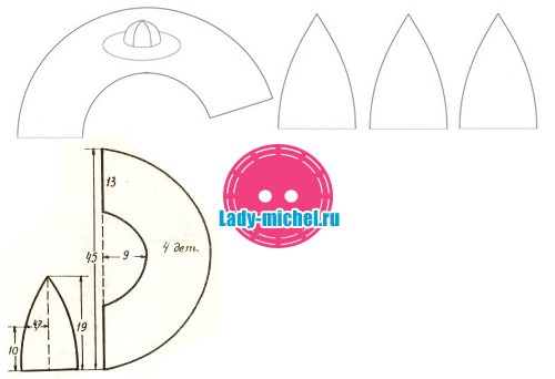 Теперь рассмотрим другой вариант шляпы с полями, но здесь будут клинья – 6 штук.