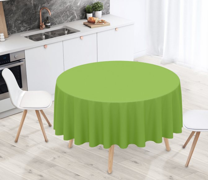 - Белый. Не лучший вариант для повседневной скатерки. Быстро пачкается и выглядит слишком официально. Белая круглая скатерть во время празднеств, в качестве парадного варианта, будет придавать атмосфере торжественности;