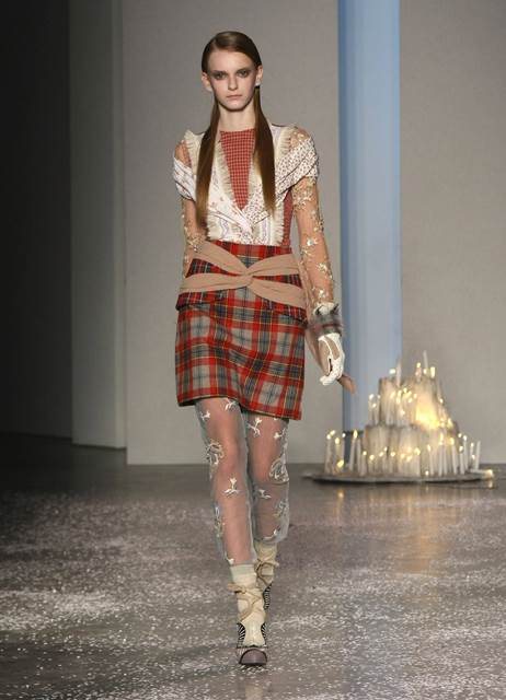 Поклонникам гранжа пригодится красно-черный тартан. Лучше всего выбирать прямые юбки, сочетая их с косухами, грубой обувью, растянутыми джемперами и рваными колготами.