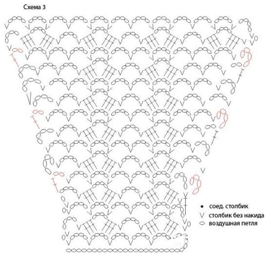 Достигнув высоты 27 (30, 36, 40) см, заканчиваем 4-й рядок сх. и оканчиваем.