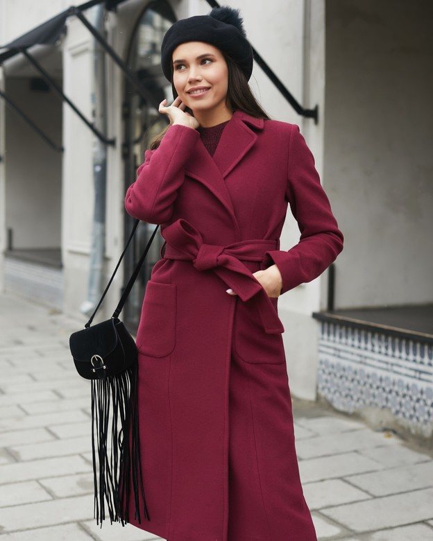 Пальто бордового цвета подходит всем без исключения. Подбирать подходящий оттенок и модель следует исходя из типа фигуры и возраста. Женщинам старше 30 лет стоит обратить внимание на приглушённые, тёмные оттенки бордо.