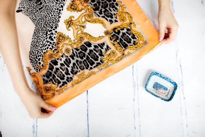 - Из двух ярких платков можно создать вечерний наряд. При этом не нужно тратить много времени.
