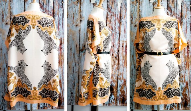 - Существует много фасонов одежды, которую можно сделать из платков. Все они требуют минимального количества времени. Что касается платьев, то можно сшить тунику, бандо, летучую мышь, греческое одеяние и другие варианты.