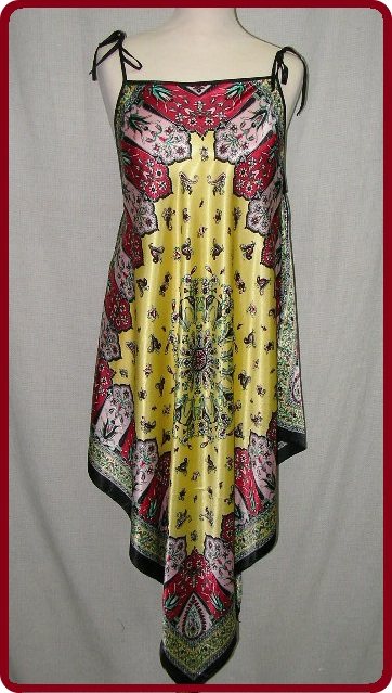 Чтобы сделать такое платьице, нужно сшить платки в требуемых местах, свободные края при этом завязывают на шее.