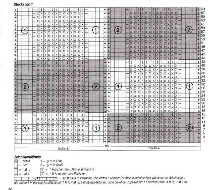 Вторая схема предназначена для вязания ажурного узора в рукавах.
