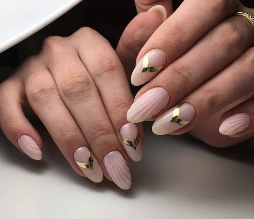 Ваш любимый нюдовый маникюр можно оживить с помощью золотых и серебряных полосок. Актуальными в сезоне 2020 будут такие пастельные цвета лаков: бежевые оттенки, молочные, кофе с молоком, нежно розовые, персиковые, пудра, лавандовые, светло серые, голубые лиловые. Все эти цвета отлично смотрятся на коротких ногтях и на длинных, а что касается формы, то отдавайте предпочтение мягкой квадратной форме и всеми любимой миндалевидной, они будут фаворитами в 2020 году.