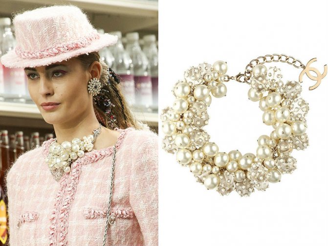 Фаворитом Шанель был жемчуг. В 1920-е она ввела моду на многослойные перламутровые ожерелья как со вставками и подвесками (сотуар), так и без них. Длина жемчужной нити Габриэль до «укладки» на шее, груди или спине составляла более одного метра! Модельер носила жемчуг сама и советовала его всем своим клиенткам, так как была убеждена, что нет женщины, которой перламутр не подходит.