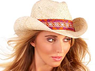 Оригинальности образу добавит стильный вариант головного убора по типу ковбойской шляпы. Украшать такую модель лучше тесьмой или ленточкой. Такой убор гармонично смотрится с одеждой в ткани denim.