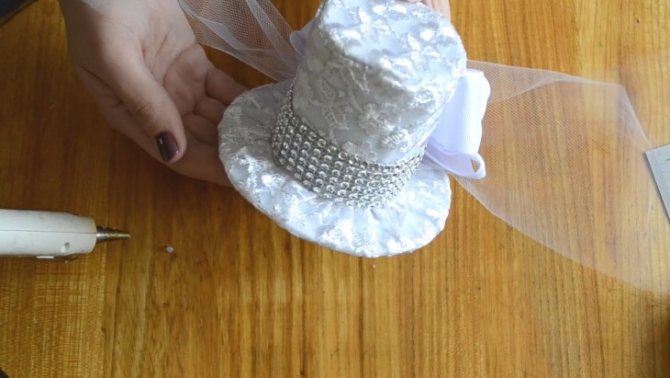 Остается только проколоть при помощи иголки два отверстия в шляпе и закрепить резинку.