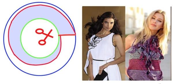 Аналогично можно вывести и любую другую форму, но следует помнить, что внутренняя часть выкройки – это всегда круг либо его часть (полукруг или четверть круга, что используется для уменьшения «волнистости»), внешняя же целиком подвластна воле дизайнера.