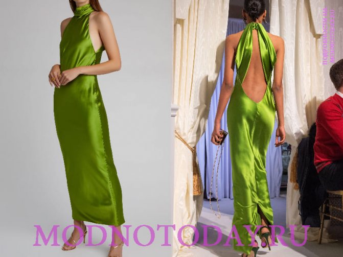 Ниже на фото бесподобное дизайнерское платье из натурального шелка с открытой спиной и плечами. Длина до середины щиколотку уравновешивание фигуру и не позволяет девушке выглядеть вульгарно.