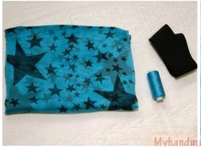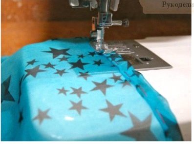Нарукавник имеет вид трубы. Его также необходимо расшить, чтобы он блестел, как и верхняя часть костюма. В нарукавник продевается бельевая резинка в верхней и нижней части. Еще одну резинку сюда нужно пристрочить следующим образом: