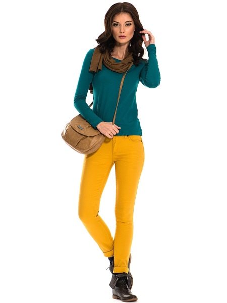 - Сочетание таких цветов, как горчичный и зеленый, является очень модным. Прекрасным примером может выступить наряд, состоящий из брюк болотного цвета и горчичной блузы. Городской стиль и «кэжуал» не могут обойтись без этих цветов.