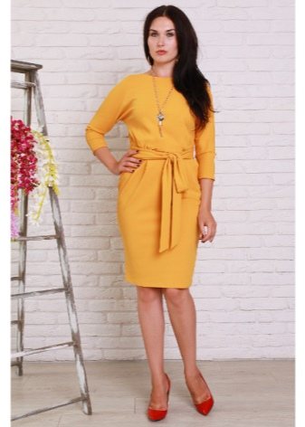 - Платье-футляр в горчичном колорите станет отличным вариантом офисного наряда, этот же предмет гардероба в стиле сафари подойдет для прогулок и встреч с друзьями в неформальной обстановке, а для летних месяцев можно подобрать легкий сарафан такого оттенка. Дополнить образ поможет обувь или аксессуары из подходящей цветовой гаммы.