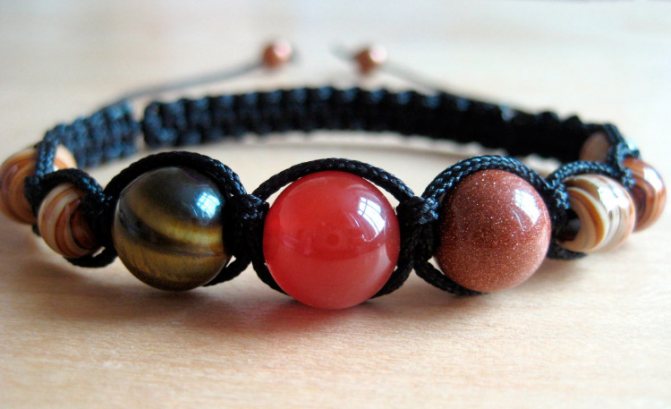 При выборе бусин нужно ориентироваться на ширину отверстия: важно, чтобы оно было достаточно большим, поэтому обычный бисер не подойдет — не получится нанизать его на шнур. Обычно для одного браслета требуется 5-7 бусинок, но есть примеры потрясающих работ, в которых задействована всего одна бусина.