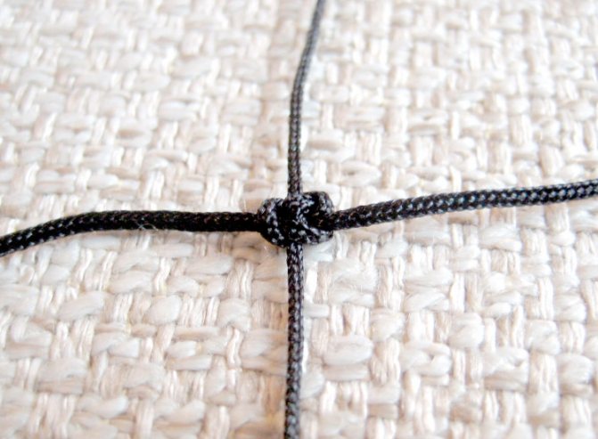 Затягиваем. Первый квадратный узел готов.