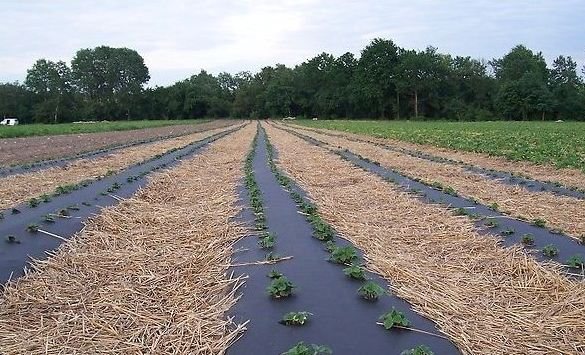 Использование материала в садоводстве (на плантациях земляники, крыжовника, смородины, ежевики) снижает степень развития заболеваний, вызванных в результате контакта ягод с влажной почвой. В первую очередь это относится к серой гнили, возбудитель которой находится в любой почве.