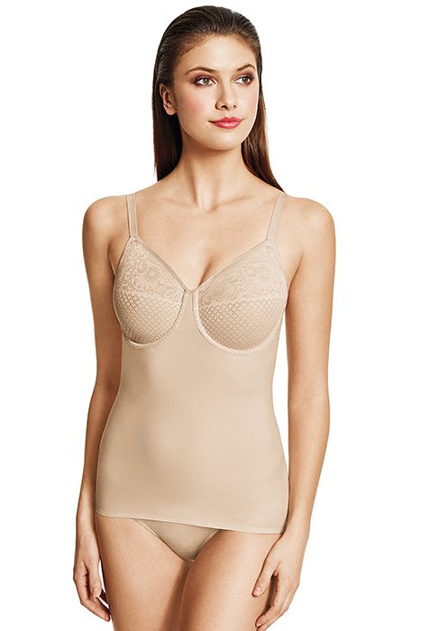 - Корсетные. Такие варианты очень удобны, поскольку сочетают одновременно несколько характеристик нижнего белья. Это нечто среднее между корсетом, майкой и лифчиком. Подобные варианты превосходно поддерживают бюст и делают фигуру заметно стройнее.