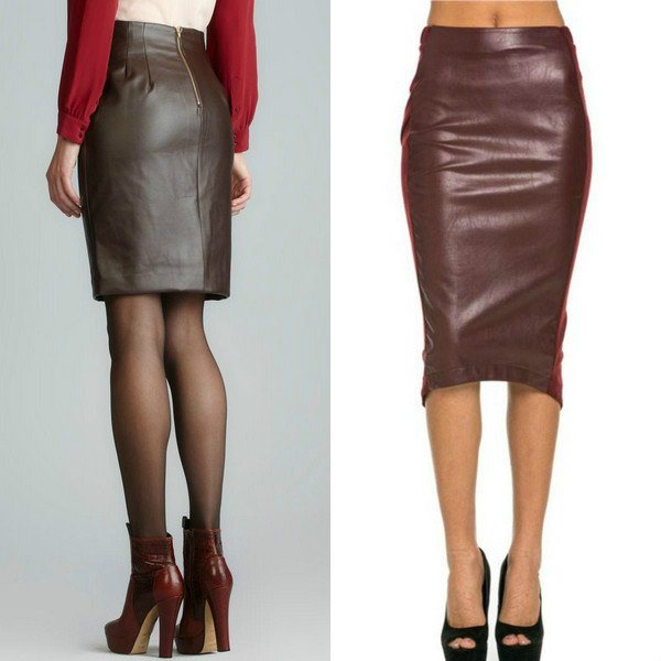 Весьма оригинально смотрятся модели, изготовленные из материала под кожу или же, если девушка может себе это позволить стилисты рекомендуют выбирать натуральные кожаные модели с молнией спереди. Длина таких изделий обычно колеблется от колена и выше, поэтому их стоит сочетать с красивыми и элегантными вещами, чтобы образ не получился перегруженным.