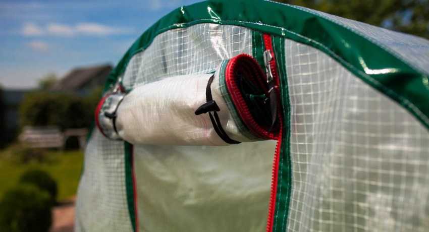 Если выкроить из ткани заготовки, склеить их горячим (с помощью паяльника или паяльной лампы) или холодным способом, применяя клеевые составы, то получится чехол на теплицу из армированной пленки 400 мкр, который удобно надевать на каркас в начале сезона и снимать по окончании его. Не придется тратить время на укладку, фиксирование полотна, не будет риска повредить его во время закрепления.