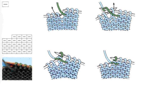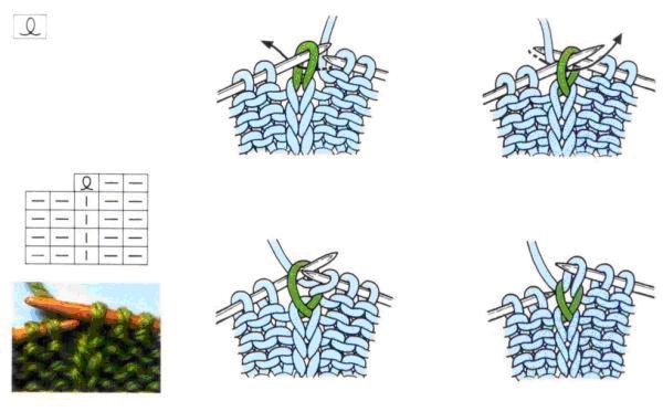 Схемы представляют собой описание рисунка в виде обозначений. Разобраться в них легко, имея небольшую шпаргалку. Петля изнаночная При вязании ИП нитка расположена спереди, т.е. перед полотном. Правую спицу продеваем в петлю сверху вниз и захватываем рабочую нить.