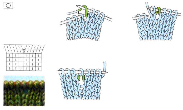 Накид Обозначение накида – пустой кружок. Обычно используется при прибавлениях для увеличения количества петель на спицах, а так же для получения красивого ажурного узора. Нить просто накидывается на иглу.