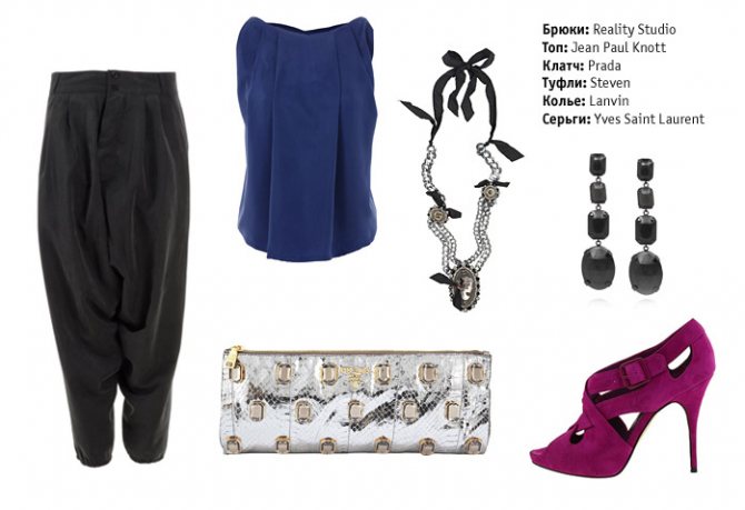 Следующие два варианты мы построили на основе легких шелковых брюк. Эти look’и будут смотреться более экстравагантно.