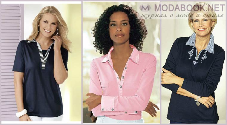 Изящные клепки со вставками кружева или стразами добавят шика и элегантности к образу иного стиля. В данном случае очень свежо смотрятся женские майки с воротником.