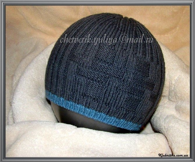 Расчет и описание шапочки даны для взрослого человека. Но если уменьшить количество набираемых петель, то такую шапочку вполне можно связат на подрастающего мальчика.