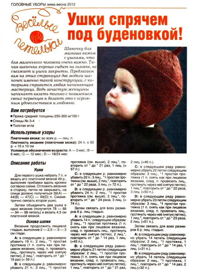 Самый удобный головной убор для малышей – буденовка. Он не сползает на глазки, хорошо согревает. Да и ушки у ребенка всегда будут прикрыты. Нужно лишь правильно подобрать пряжу, чтобы она не была колючей. В противном случае малыш попросту откажется носить такую необычную шапку.