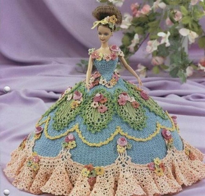 Из хорошей пряжи крючком можно связать великолепный наряд для куклы