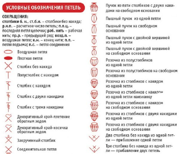 Условные обозначения в схемах вязания